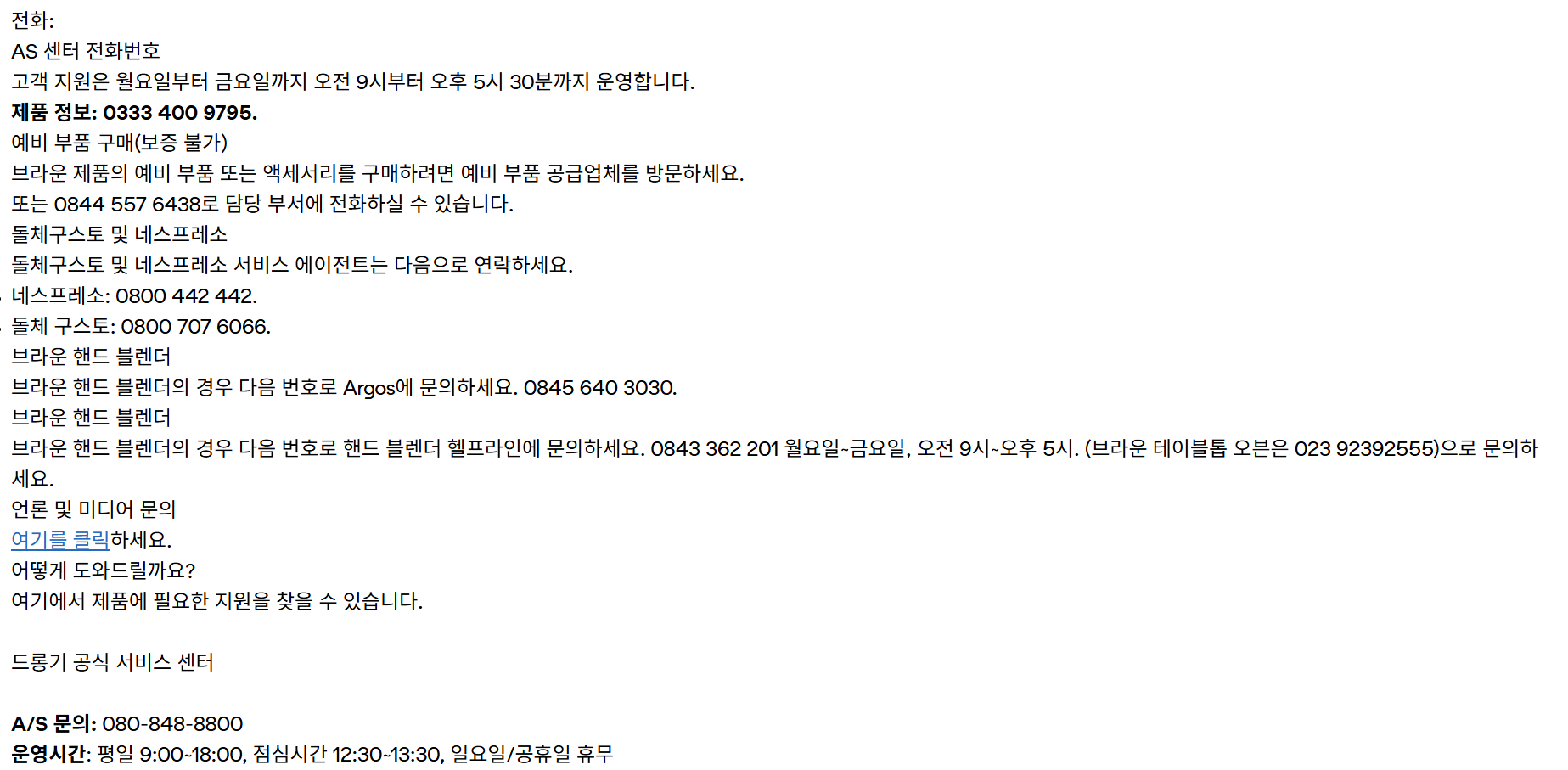 - 드롱기 고객센터 전화번호: 080-848-8800