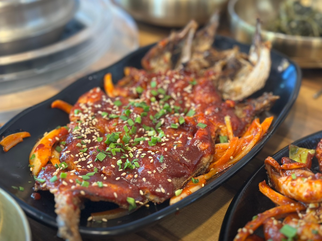 - 직접 담근 밑반찬과 바삭한 코다리구이