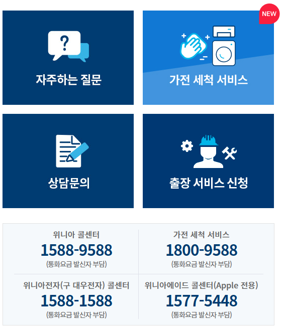 클라쎄(Klasse) 제품의 고객센터 및 서비스센터 운영은 위니아 통합 서비스 체계를 통해 진행됩니다.