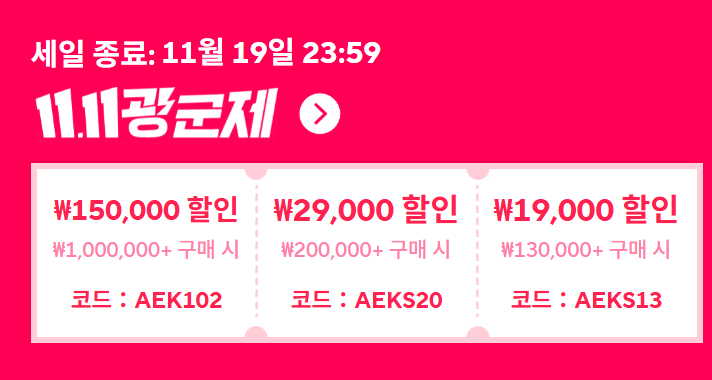 - 11SALE30 – $200 이상 구매 시 $30 할인