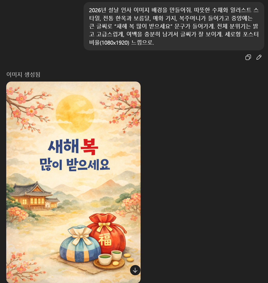 요즘은 디자인 프로그램 몰라도 AI로 설날 이미지를 바로 만들 수 있습니다.